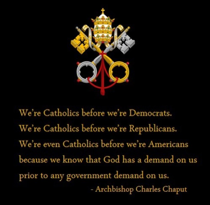 We are Catholics FIRST before we are patriots, American, British, Conservative, Republican etc