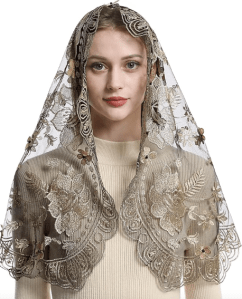 thank you for all your content on veiling and catholic femininity. My baby will be getting baptised soon and I really like all the choices for baptism gowns that you have on your site. I would like to ask for your advice on what veil colour I should wear for the baptism as his mother. I know some women say that married women should wear black, but you have also mentioned many times that black veils is actually only for penitentiary periods in the liturgical year, during funerals and the first year of a woman becoming a widow. What colour would be appropriate to wear?”