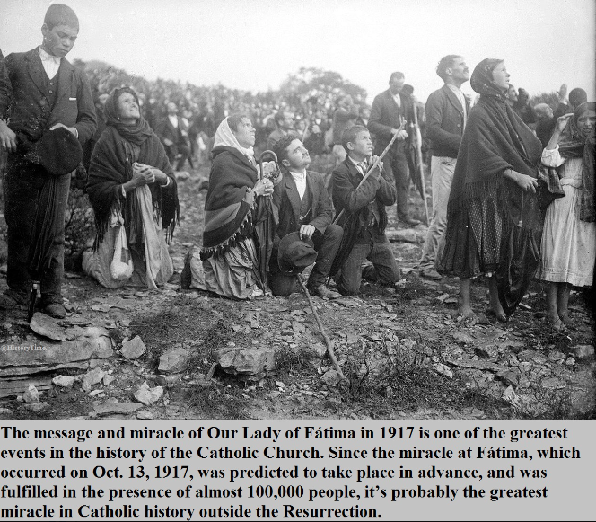 On this day, October 13, in 1917, the “Miracle of the Sun” occurred during Our Lady’s final apparition in Fátima, Portugal, where tens of thousands witnessed the miraculous event, after the three shepherd children told people about the visions of the Virgin Mary who had appeared to them on six occasions prior and told people that Our Lady would send them a miracle as proof that they were not lying.