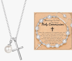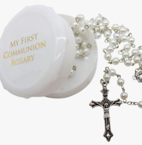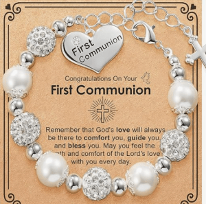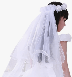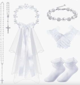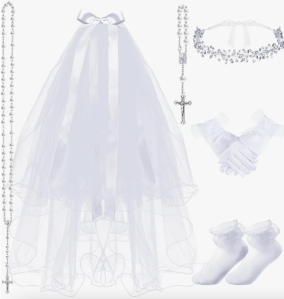 First Holy Communion gifts, outfits, dresses, veils and gloves.