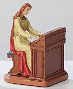 St Cecilia is the patron saint of pianists, organists, singers, instrumentalists, music and all musicians. She was martyred for refusing to partake in idol worship and is remembered in the Canon of the Mass.ย St. Cecelia is known for “singing in her heart to the Lord” upon her wedding day, despite her consecration to God. She is the patron Saint of musicians and poets because of this sentiment and her alleged singing within the oven during her martyrdom. May her devotion and joy inspire us to lift our hearts in praise and find Godโs presence in the beauty of music.